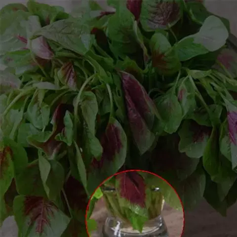 叶膜质,其大小、形状及色泽变异很大,通常卵圆形,长4-12.5厘米,宽2.5-9厘米,先端钝至短渐尖,基部宽楔形至圆形,边缘具圆齿状锯齿或圆齿,色泽多样,有黄、暗红、紫色及绿色,两面被微柔毛,下面常散布红褐色腺点,侧脉4-5对,斜上升,与中脉两面微突出;叶柄伸长,长1-5厘米,扁平,被微柔毛。