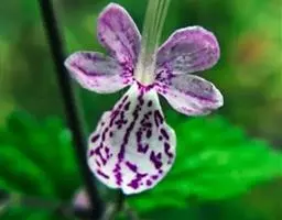 轮伞花序多花,花时径约1.5厘米,多数密集排列 成长5-10(25)厘米、宽3-5(-8)厘米的简单或分枝的圆锥花序;花梗长约2毫米,与序轴被微柔毛;苞片宽卵圆形,长2-3毫米,先端尾尖,被微柔毛及腺点,脱落。花萼钟形,10脉,开花时长2-3毫米,外被短硬毛及腺点,果时花萼增大,长达7毫米,萼檐二唇形,上唇3裂,中裂片宽卵圆形,十分增大,果时外反,侧裂片短小,卵圆形,约为中裂片之半,下唇呈长方形,较长,2裂片高度靠合,先端具2齿,齿披针形。花冠浅紫至紫或蓝色,长8-13毫米,外被微柔毛,冠筒骤然下弯,至喉部增大至2.5毫米,冠檐二唇形,上唇短,直立,4裂,下唇延长,内凹,舟形。雄蕊4,内藏,花丝在中部以下合生成鞘状。花柱超出雄蕊,伸出,先端相等2浅裂。花盘前方膨大。