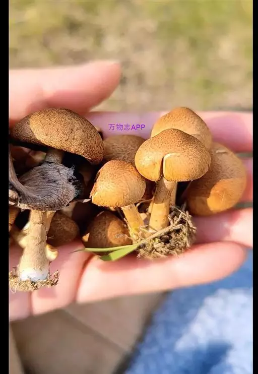 许多蘑菇还会有鳞片,大部分存在于菌盖上或者菌柄上,它们一种是纸质,由大量纤维细胞和少量膨大细胞组成;而有的蘑菇鳞片是容易破碎的膜质,它们由少量纤维细胞和大量膨大细胞组成。膨大细胞相当于水泥,纤维细胞相当于钢筋,因此很多蘑菇我们可以通过它们的鳞片软硬、脱落程度、颜色、形状来分辨蘑菇种类。