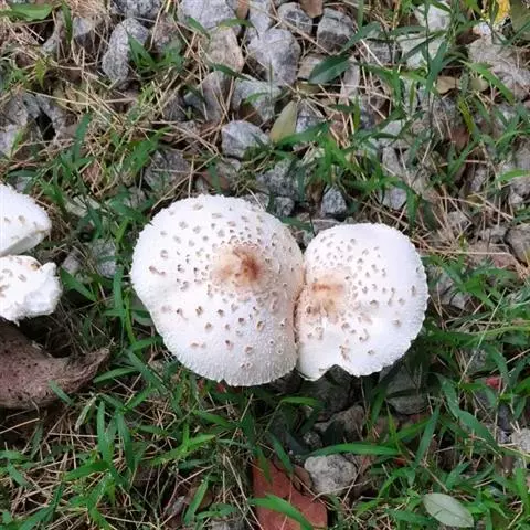 在北方地区常引起中毒的蘑菇之一为褐鳞环柄菇,其特点为赭黄色带粉红色,初凸圆形,后扁平,表面呈红褐色或褐色豹纹样鳞片,边沿内卷有棉絮样纤毛。菌肉色白,菌摺初白色,后稍带黄色,边沿有纤毛。菌柄白色,中空,基部稍膨大,菌环白,易脱落。有淡蘑菇香味。河北发生的中毒事件即为肉褐鳞环柄菇引起。
