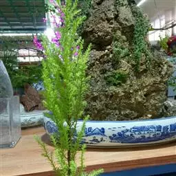 黄杨盆景树姿优美,叶小如豆瓣,质厚而有光泽,四季常青,可终年观赏。杨派黄杨盆景,枝叶经剪扎加工,成“云片状”,平薄如削,再点缀山石,雅美如画。黄杨春季嫩叶初发,满树嫩绿,十分悦目。古人咏黄杨诗,飓尺黄杨树,婆要枝千重,叶深圃翡翠,据古踞虬龙。描绘了黄杨风姿,是家庭培养盆景的优良材料。