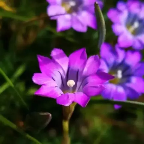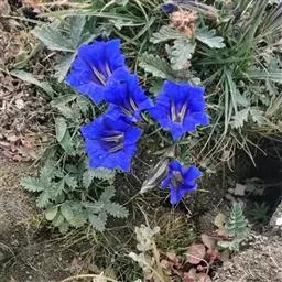 龙胆属植物花色艳丽,色彩丰富,有紫、白、蓝、黄白等多种颜色,适宜作为花坛、花镜或盆花。 龙胆最高不过四、五十厘米,大部份是矮小贴地丛生。一株上有许多分枝,花生于枝上顶端,成古钟形或漏斗形,有4-5个裂瓣,全缘的,也有细裂的成流海似的须。龙胆花在秋冬季一片枯黄的草丛中临风开放,显得分外朴实和幽静,龙胆开花一片片一簇簇,临风摇曳,显出一种淡雅、素静的美,因而成为著名的花卉。