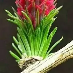 大枝斜展,小枝通常下垂,幼枝淡红褐色或桔红色,无毛或有疏毛。冬芽圆锥形,先端尖,芽鳞淡红褐色上部芽鳞反卷,基部芽鳞先端长尖,有纵脊,具短柔毛。小枝上面之叶向前或向上伸展,下面之叶向两侧伸展或与两侧之叶向上弯伸,或下垂小枝之叶辐射向前伸展,四棱状条形,直或弯曲,长1.2-2.5厘米,横切面斜方形,四边有气孔线。