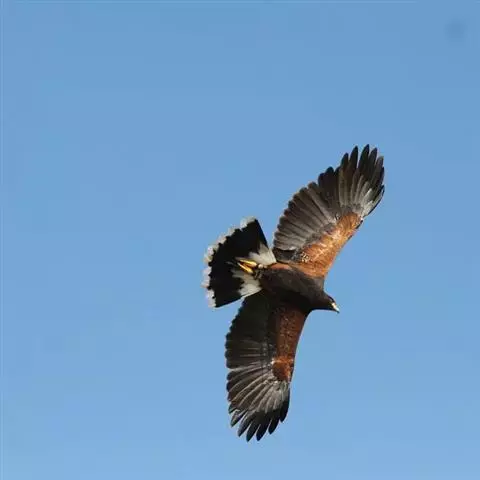 白肩雕:又名御雕,是大型猛禽。体长73-84厘米。体羽黑褐色,头和颈较淡,肩部有明显的白斑,在黑褐…