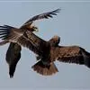 鸟类通常在孵化开始之后便再不产卵,但白头海雕却与众不同,雌鸟在产下第一枚卵后就开始孵化,在孵化初期再产第二枚卵,这样雏鸟出壳的日期先后可以相差几天,因此先出壳的雏鸟往往比后出壳雏鸟大许多。当食物极端缺乏时,便导致同窝雏鸟自相残杀的悲剧。先出壳雏鸟如果没有食物可吃,便会把后出壳的雏鸟当作食物吃掉。由此可见白头海雕雏鸟的长大要经过多么严酷的生存竞争。