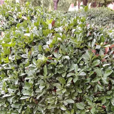 常绿灌木或小乔木,高达8米。 叶光亮革质,倒卵形或窄长椭圆形,长3-6厘米,宽2-3厘米。 聚伞花…