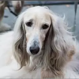 阿富汗猎犬全身披丝绢状的长毛,毛色鲜艳,呈多种颜色,背中线附近毛短,…