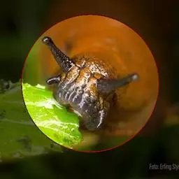 扁蜗牛 在现今环境保护意识抬头的时代,如何以非农药防治技术来达成植物保护的目的已愈来愈重要。在多雨潮湿气候,扁蜗牛常出没于植物的新梢、叶丛间危害,因白天都潜伏在阴湿角落,如盆钵四周、草堆中、石块下等处,到了黄昏夜晚才出来活动与取食。有时莫名其妙发现植物被啃食,又不知祸首为何,这时罪魁祸首通常就是扁蜗牛,再加上其繁殖速度惊人,所以不得不加以防范。有个既简单又环保的防治方法:将600㏄的宝特瓶由约中间部位切掉一半,然后用剪刀由下往上至瓶口处剪开,扳开剪口缝隙,套住树木茎干基部约离地15至30公分处,再以胶带固定住,如此蜗牛无法向上攀爬,且因只会前进不会后退,便会聚集在瓶口处,早晨便可收集起来,再移往他处放生,如此就可轻易达成以环保做植保的目的了。