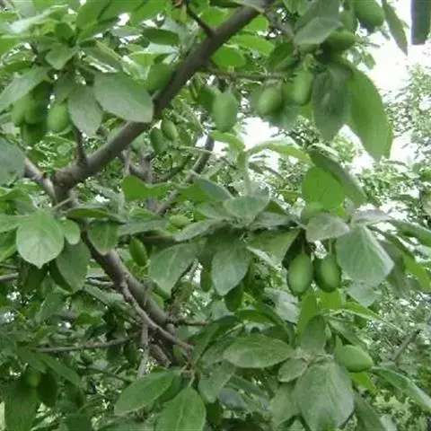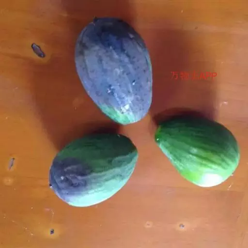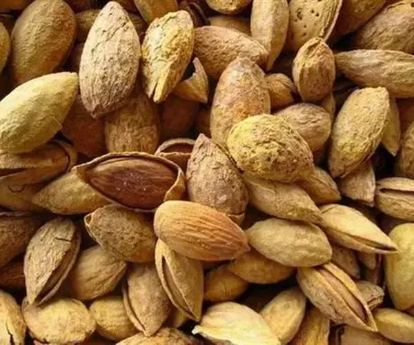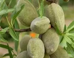 巴旦木 加州巴旦木的果实为灰绿色。随着果实不断成熟变硬,在7月外筴会开裂。从7月底到8月,裂口增大,露出巴旦木壳体。这使得壳内的巴旦木核和果仁得以晒干。整个果仁和茎脱离。临近收获期,外筴外全裂开。