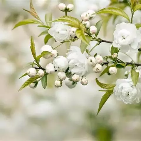 榆叶梅,是蔷薇科李属灌木稀小乔木植物。榆叶梅枝条开展,具多数短小枝;叶片宽椭圆形至倒卵形,先端短渐尖,…