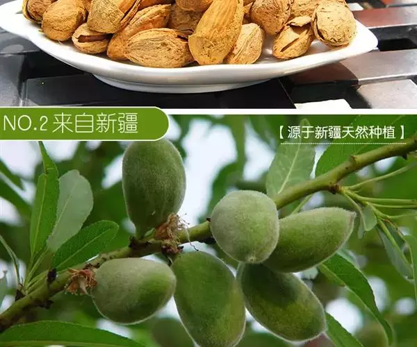 巴旦木又称巴达木或巴旦杏,也有俗称薄壳杏仁。全球80%的巴旦木产于加州,中国新疆也有种植,主要在天山以南喀什绿洲的疏附、英吉沙、莎车、叶城等县。其别名甚多,古时称扁桃、扁核桃、婆淡树,也有称:巴旦姆。我国种植巴旦杏有一千三百多年的历史。在《酉阳杂俎》、《岭表录异》有记载考证,唐书文中载:偏桃出波斯国,波斯呼为婆淡树。长五六丈,周四五尺,叶似桃而阔大,三月开花,白色。花落结实,状如桃子,而形偏,故为之偏桃。其肉涩不可唆,核中仁甘甜,西域诸国并珍之。