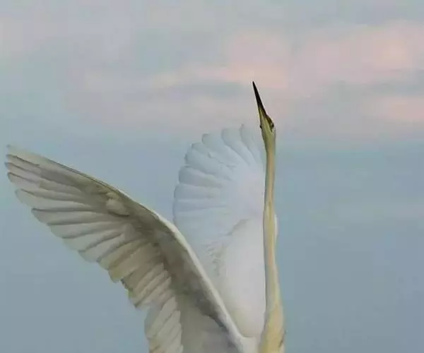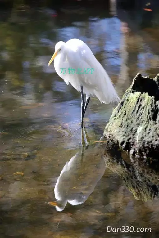 也叫白鹭,老、唐白鹭等,是一种中型涉禽,体长为46~65厘米,体重320~650克,雌鸟略小。它的姿态十分优雅,身体纤瘦而修长,嘴、颈、脚均很长,身体轻盈,有利于飞翔。它披着一身白色的羽毛,一尘不染,显得高傲。但羽色在夏季和冬季也有很大的变化,夏季嘴为橙黄色,脚为黑色,趾为黄色,眼先为蓝色;枕部着生有多枚细长白羽组成的矛状长形冠羽,最长的2枚长达10多厘米,像一对细柔的辫子,迎风飘扬,美丽动人。背部、肩部和前颈的下部着生有羽枝分散的蓑状的长饰羽,所以被称为“蓑羽”,向后延伸超出尾羽端部,前颈基部的蓑羽则垂至下胸,就像丝线一样。在胸部、腰侧和大腿的基部,还生有一种特殊的羽毛,成为粉,能不停地生长,先端不断地破碎为粉粒状,就像滑石粉一样可以将黏附在体羽上的鱼类黏液等污物清除掉,起着清洁羽毛的作用。冬季嘴变为暗褐色,下嘴的基部呈黄色,眼先为黄绿色,脚也是黄绿色,背部、肩部和前颈的蓑状饰羽也统统消失了。