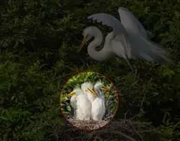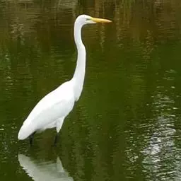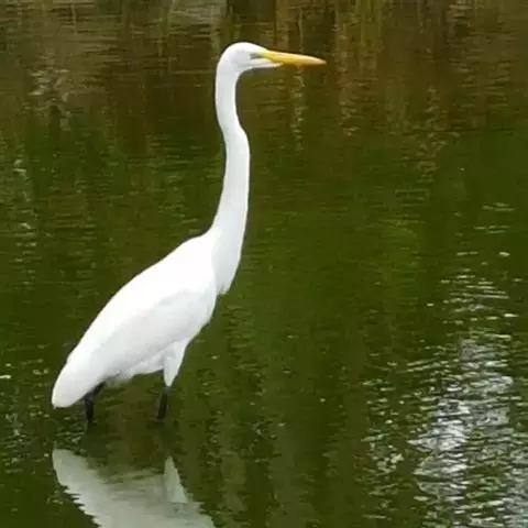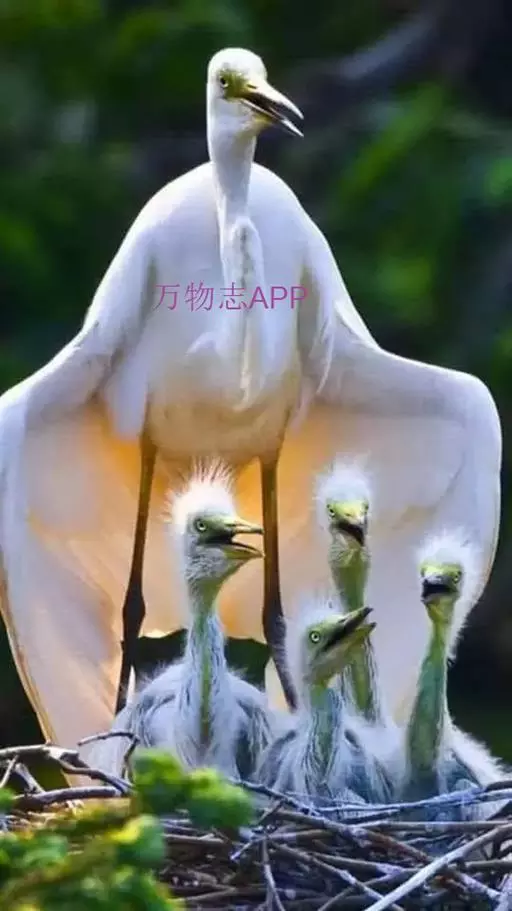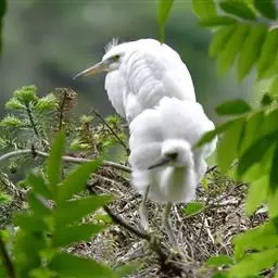 大白鹭 体态纤瘦,乳白色:夏羽的成鸟繁殖时枕部着生两条狭长而软的矛状羽,状若双辫;肩和胸着生蓑羽,冬羽时蓑羽常全部脱落,虹膜黄色;脸的裸露部分黄绿色,嘴黑色,嘴裂处及下嘴基部淡角黄色;胫与脚部黑色,趾呈角黄绿色。通常简称为白鹭。小白鹭场栖息于稻田、沼泽、池塘间,以及海岸浅滩的红树林里。常曲缩一脚于腹下,仅以一脚独立。白天觅食,好食小鱼、蛙、虾及昆虫等。繁殖期3~7月。繁殖时成群,常和其他鹭类在一起,雌雄均参加营巢,次年常到旧巢处重新修葺使用。卵蓝绿色,壳面滑。雌雄共同抱卵。卵23天出雏。