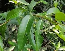 常绿乔木,高达25-35米,具大板根;小枝圆柱状,被褐色短绒毛或变无毛。叶对生,厚纸质;叶片长椭圆形,长10-18厘米,宽5-8厘米,全缘或微波状,偶有粗齿,顶端有一短而偏斜的尖头,基部钝圆,除中脉两侧被黄褐色毛外,其余无毛或近无毛,侧脉15-25对,两面明显,平行;叶柄较粗,长5-15毫米,顶端有一对具柄的腺体。