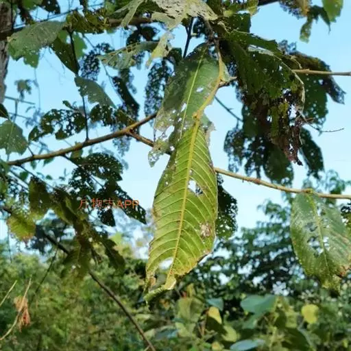 幼林或成林后多出现绒刺蛾、绿黄毛虫和绒毛络瘤蛾等危害,幼虫常群居叶背、取食叶肉,全树甚至大面积危害,严重影响林木的生长,有的由于虫害而导致死亡。防治方法:可选用辛硫鳞50%乳油1000倍液、氰戊菊酯20%乳油3000-4000倍液、功夫(氯氟氰菊酯)2.5%乳油500倍液,每10天喷洒1次,连续2-3次,均能起到较好的防治效果。