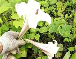 岷江百合(拉丁学名:Lilium regale Wilson),百合科百合属植物,又叫王百合、千叶百合,俗称崖半花、喇叭花、夜香花。岷江百合的鳞茎宽卵圆形,高约5厘米,直径3.5厘米。