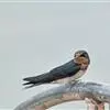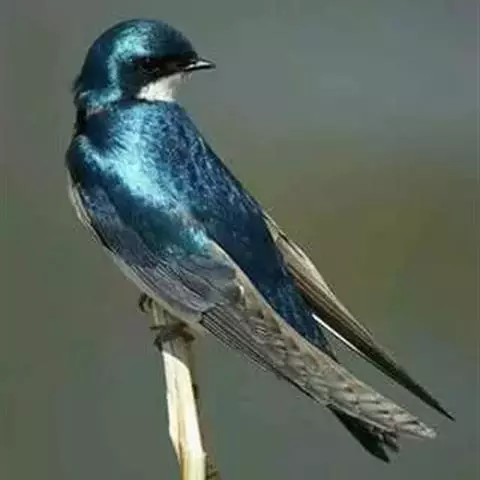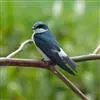 线尾燕,腹部接近纯白色,背部则为深紫色,头部的羽毛是栗色的。