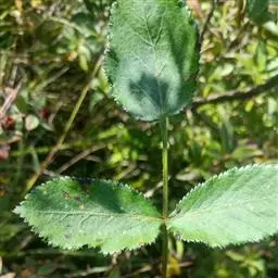 叶片1或2回羽状全裂,羽片广卵形或扇形半裂,长1-2厘米,宽1-1.5厘米,边缘有钝锯齿、缺刻或深裂,上部的茎生叶3回以至多回羽状分裂,末回裂片狭线形,长5-10毫米,宽0.5-1毫米,顶端钝,全缘。