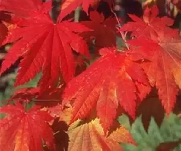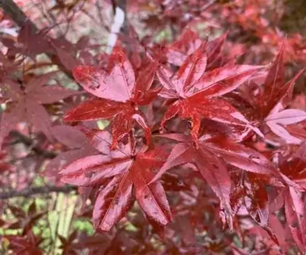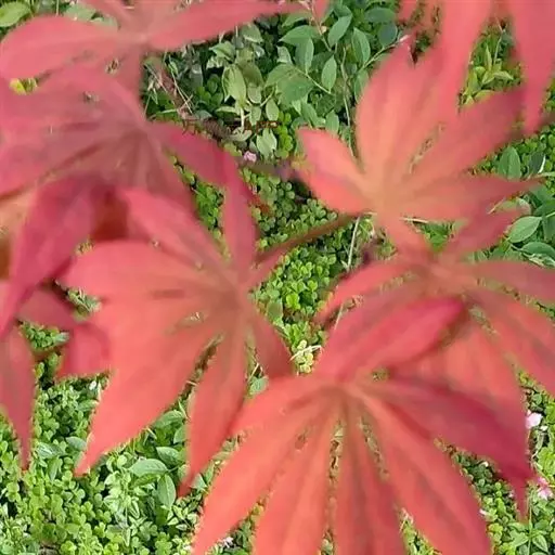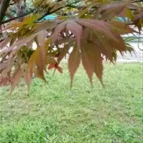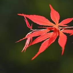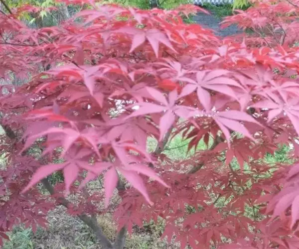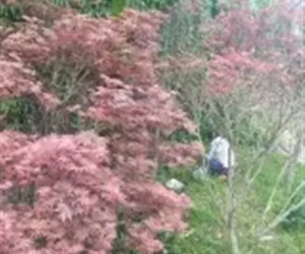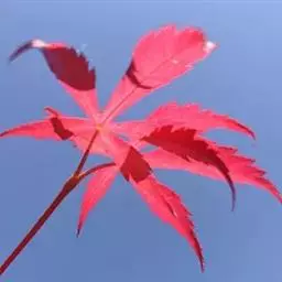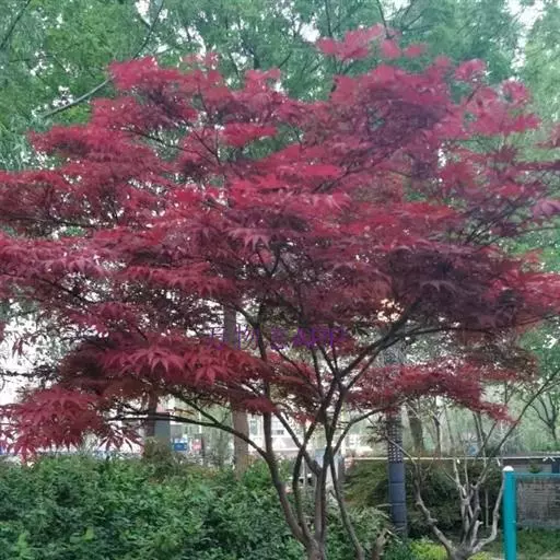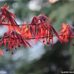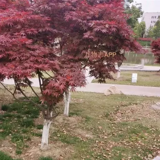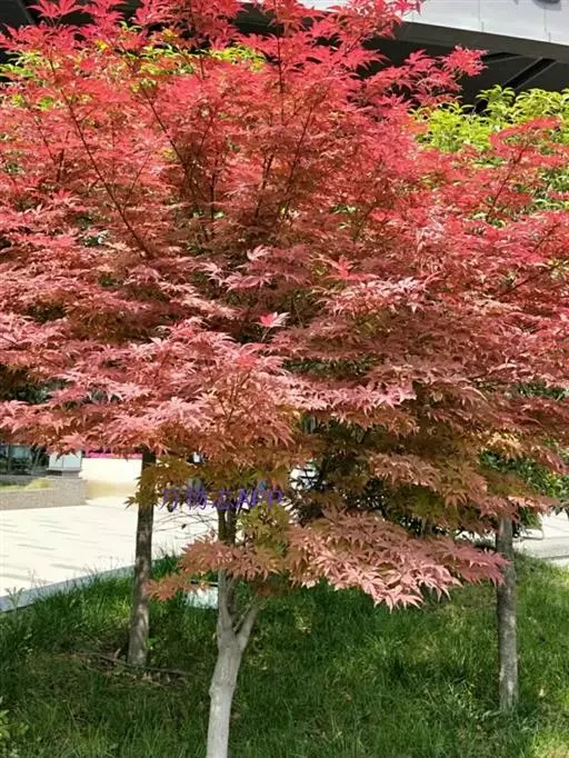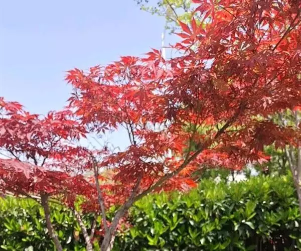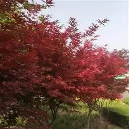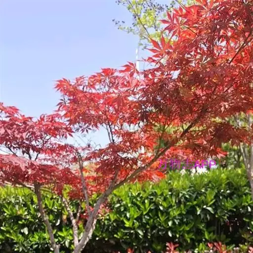 日本红枫又名日本红丝带。被誉为"四季火焰枫"。日本红枫属于槭树科槭树属落叶小乔木或灌木。它的树冠呈扁圆或伞形,掌状5-7深裂,卵状披针形,单叶互生,叶片先端尖锐,叶缘有锯齿。此品种在春、夏、秋三季叶片均为红色,个别品种颜色非常艳丽。夏季随着光照的增强叶体光合作用随之增强,逐渐有变绿的趋势.效果已经不如春季,秋季的时候新叶能够保持红色,但已经发暗,老叶已经变成墨绿色。日本红枫树种较小.一般用做景观绿化用。