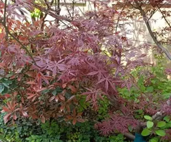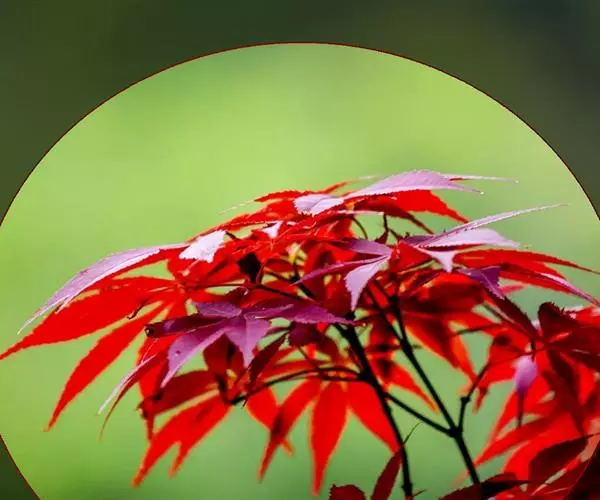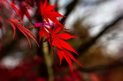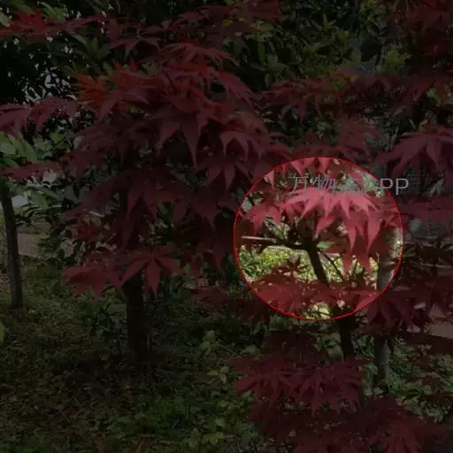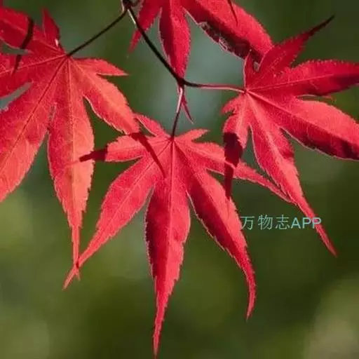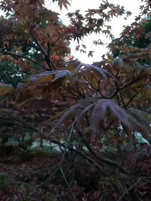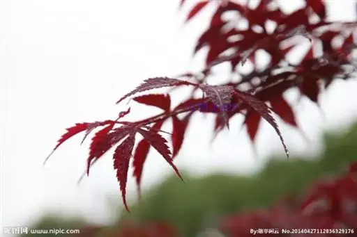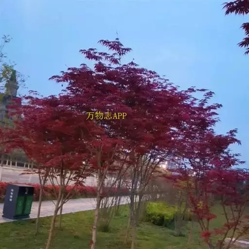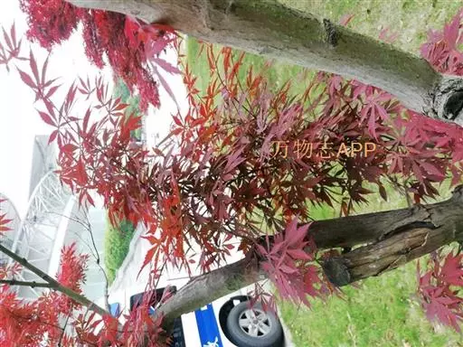 红枫树高2—8米,枝条多细长光滑,偏紫红色。叶掌状,5-7深裂纹,直径5—10CM,裂片卵状披针形,先端尾状尖,缘有重锯齿。花顶生伞房花序,紫色。翅果,翅长2-3CM,两翅间成钝角。