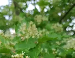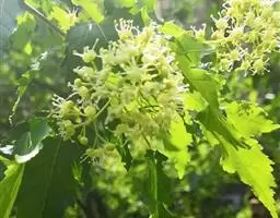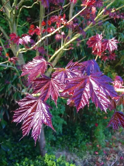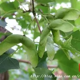 春、秋季叶红色,夏季叶紫红色。嫩叶红色,老叶终年紫红色。伞房花序,顶生,杂性花。花期4-5月。翅果,幼时紫红色,成熟时黄棕色,果核球形。果熟期10月。
