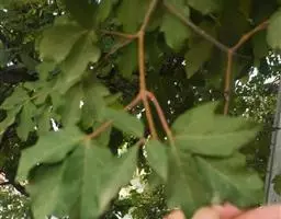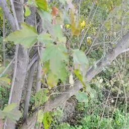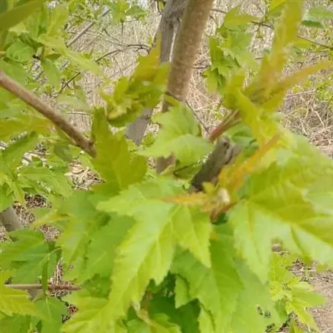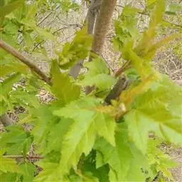 落叶小乔木。树姿开张,小枝细长。树皮光滑,呈灰褐色。单叶交互对生,常丛生于枝顶。叶掌状深裂,裂片5-9.裂深至叶基,裂片长卵形或披针形,叶缘锐锯齿。