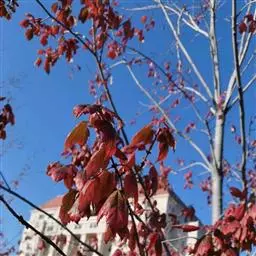 美国改良红枫是从红花槭中选育的园艺变种和红花槭与银白槭杂交的自由人槭中选育的园艺变种的总称,具有一系列的改良品种,是高大落叶乔木,高度18-25M,树冠椭圆,冠幅12-15M。 耐寒性强,耐-35℃,适应中性及微酸或微碱性土壤。生长速度较快,年平均生长80cm-120cm(视水土及土壤肥力)。春天开花,有红色花穗,种子为羽翅状果、颜色浅红。树叶成掌状,长约5-10cm, 春天幼芽浅红色,夏季碧绿,秋天为鲜红色,挂色期长、落叶晚。树干笔直,成深褐色,材质坚硬、纹理好。健康的美国改良红枫基本上不受病虫害的影响,其寿命为100年左右。