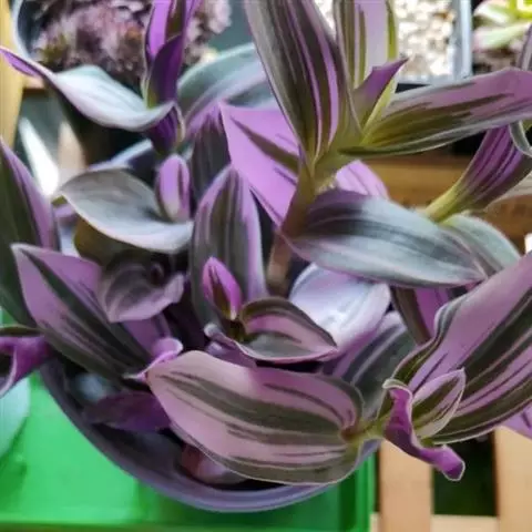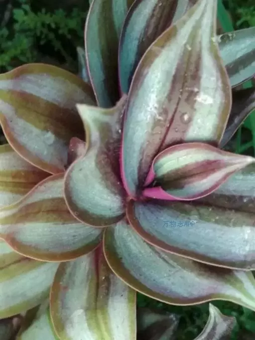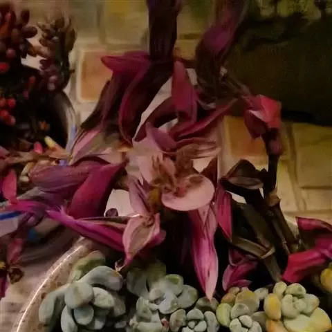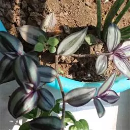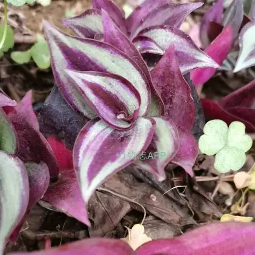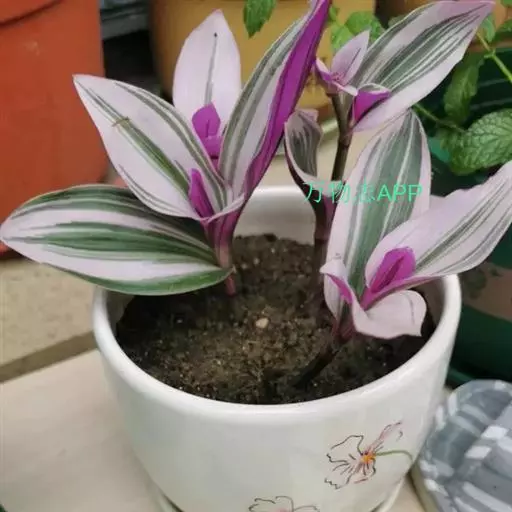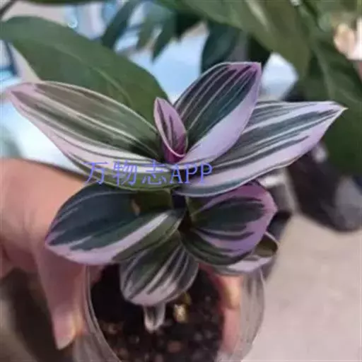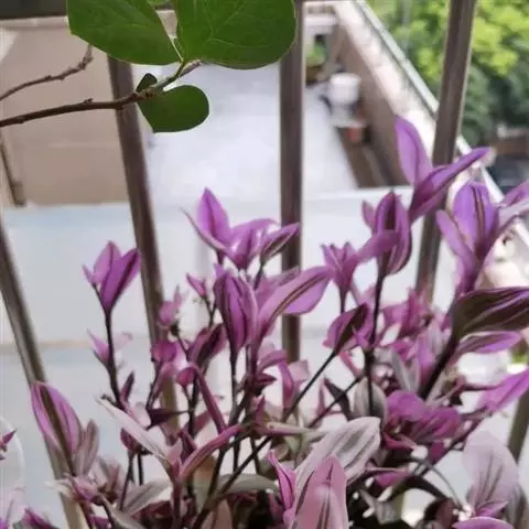 吊竹梅(学名:Tradescantia zebrina Bosse)是鸭跖草科常绿草本植物,茎柔弱质脆,匍匐地面呈蔓性生长。叶互生,无柄;椭圆状卵圆形或长圆形、背面紫色,通常无毛,全缘。花聚生于叶状苞内;花瓣玫瑰粉红色。果为蒴果。花期6-8月。