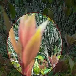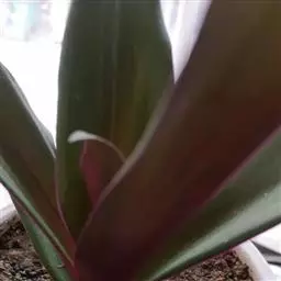 叶互生,无柄,椭圆状卵圆形或长圆形,先端尖锐,基部钝,全缘,长5-7厘米、宽3-4厘米;表面紫绿色或杂以银白色条纹,中部和边缘有紫色条纹,叶背紫红色;叶鞘长0.8-1.2厘米、宽0.5-0.8厘米,薄,膜质,长在节嘴具缘毛,或无毛或疏生柔毛。