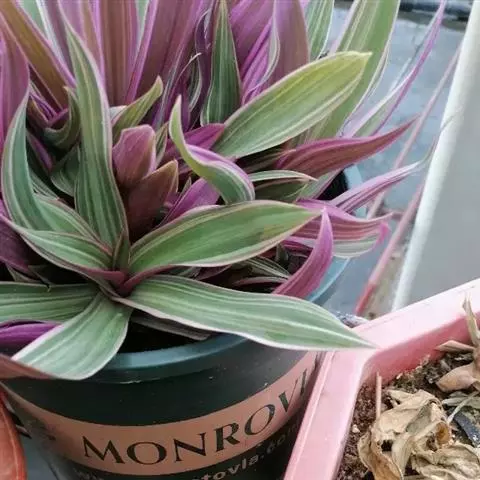 吊竹梅用在家居布置一般是小型盆栽,生长迅速,1年可覆盖满盆,枝叶匍匐悬垂,叶色紫、绿、银色相间,光彩夺目。置于高几架、柜顶端任其自然下垂,也可吊盆欣赏。或布置于窗台上方,使其下垂,形成绿帘。庭院栽培常用来作整体布置。