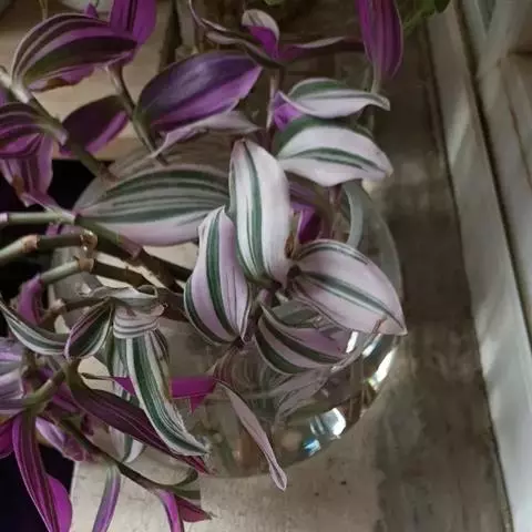 吊竹梅枝条自然飘曳,叶面斑纹明快,叶色别致。植株小巧玲珑,又比较耐阴,适于美化卧室、书房、客厅等处,可放在花架、橱顶,或吊在窗前自然悬垂。