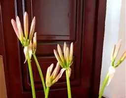 长筒石蒜草本,地生。鳞茎卵球形;叶披针形;伞形花序,有花5-7朵,花白色;花被裂片腹面稍有淡红色条纹,…