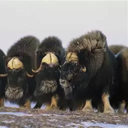 麝牛,是偶蹄目牛科麝牛属哺乳动物。麝牛体型大,但低矮粗壮,头大,吻部宽,眼小;雌雄均具角,四肢短粗,…
