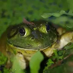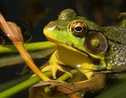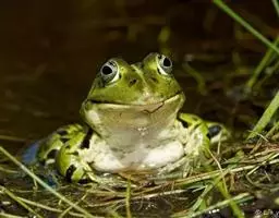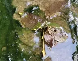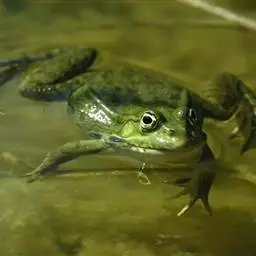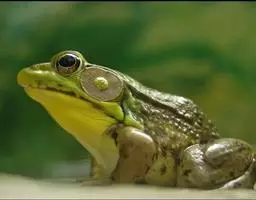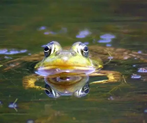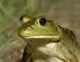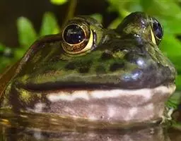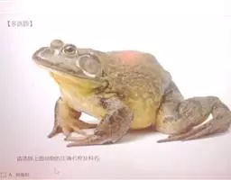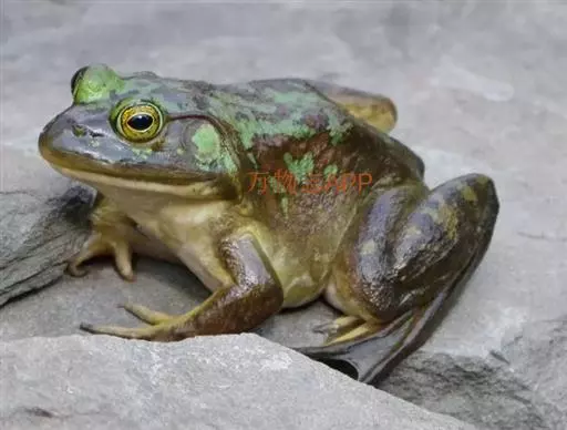 牛蛙 原产于北美,因其鸣叫声宏亮酷似牛叫而得名。1959年牛蛙从古巴引入我国,九十年代左右开始在我国被大范围推广养殖。近年来,牛蛙已成为我国水产养殖重要的名特水产品之一。