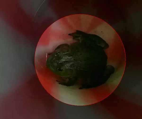 刚发病时,牛蛙的头部皮肤失去光泽, 出现白花纹, 接着表皮层脱落, 露出背肌, 后扩展到躯干, 以至整个背部。重者皮肤腐烂脱落,肌肉裸露,扩展到全身,拒食,不爱活动。