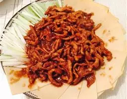 京酱肉丝,是一道知名度很高的菜肴,它是北京菜中的经典代表菜之一。制作时选用猪瘦肉为主料,辅以甜面酱…