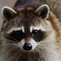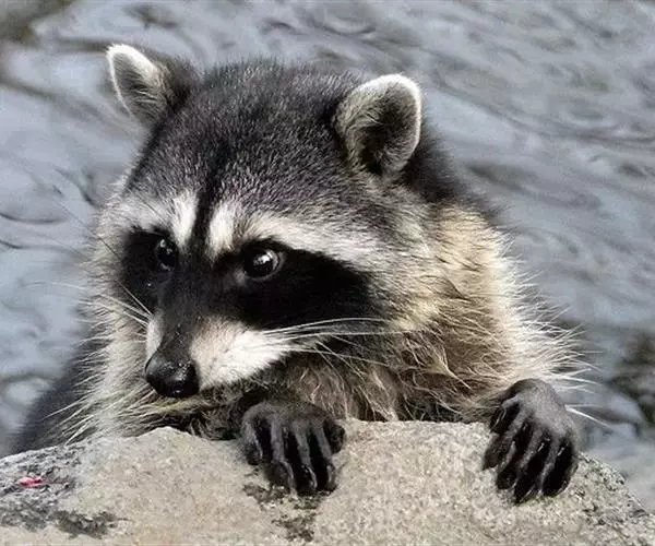 浣熊最大的特征是眼睛周围的黑色区域,与周围的白色的脸颜色形成鲜明对比。耳朵略圆,上方为白色毛,通常颜色深浅的灰色,也有部分为棕色和黑色、淡黄色,及罕见的白化种。越冬时,皮毛会增长到2~3cm。 前后脚有五趾,脚趾常分,能抓住东西,口中原本是裂肉齿,进化成能咬碎东西的牙齿。