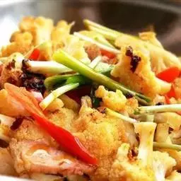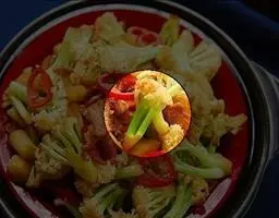 干锅花菜,是湘菜常见的一道菜,以花菜、秀珍菇、蘑菇、青红尖椒为主要食材,…
