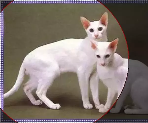 毛色:毛色鲜亮,白色为基本色,三色的比较名贵,也有深色类似老虎皮带有斑纹的及其他颜色。