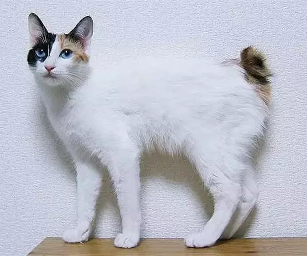 日本短尾猫,又名日本截尾猫。这种猫是由于基因突变而产生的品种。日本短尾猫在日本本土已有一千年左右的历史,有人认为它是1000多年前由中国或朝鲜传入日本的。日本短尾猫的尾巴仅长10厘米左右,与马恩岛猫都是尾巴最短的猫品种。日本短尾猫中以三色猫最为受欢迎,但红白猫、白猫也很多。招财猫的样子即来自于日本短尾猫。