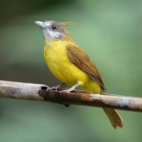 黄绿鹎,小型鸟类,体长19-22厘米。额至头顶暗褐具灰色羽缘,眼先黑色,…