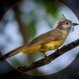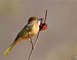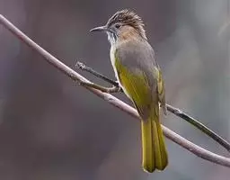白喉冠鹎:体长20-25厘米。头顶红褐色,有长而细的羽冠、红褐色,头侧灰色。上体橄榄绿黄色,…