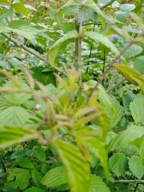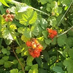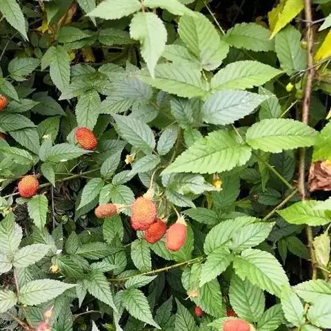 覆盆子为灌木,高1—2米;枝褐色或红褐色,幼时被绒毛状短柔毛,疏生皮刺。小叶3-7枚,长卵形或椭圆形,…