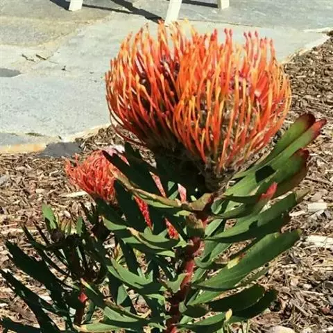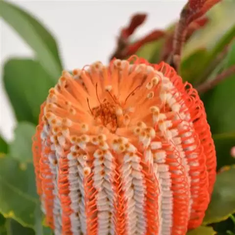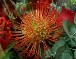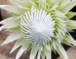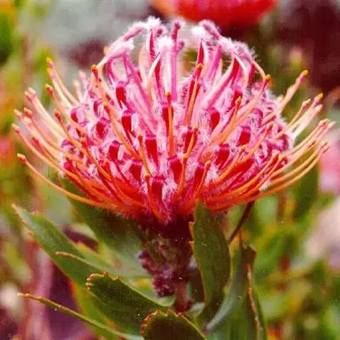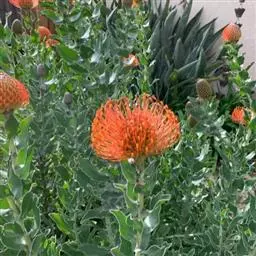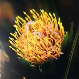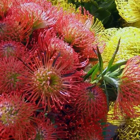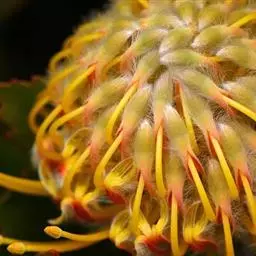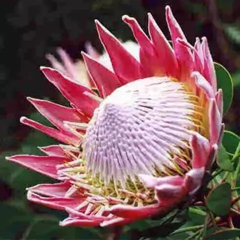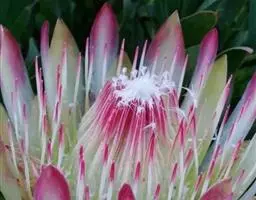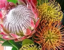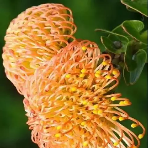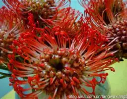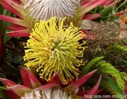 帝王花,山龙眼科帝王花属多年生常绿灌木植;茎干粗壮,叶色翠绿光亮;花朵呈圆球状;其苞片有的完全打开,…