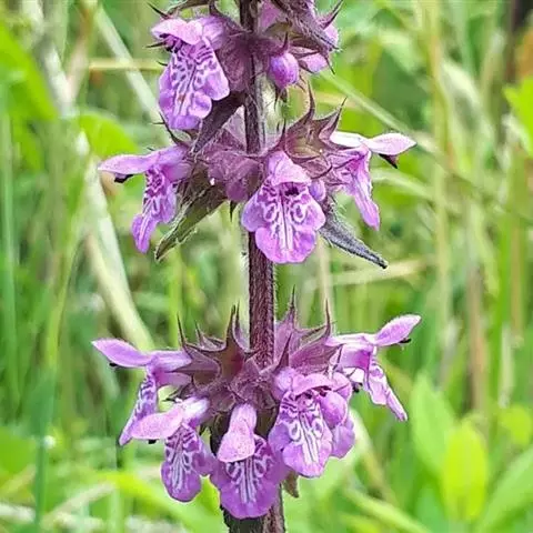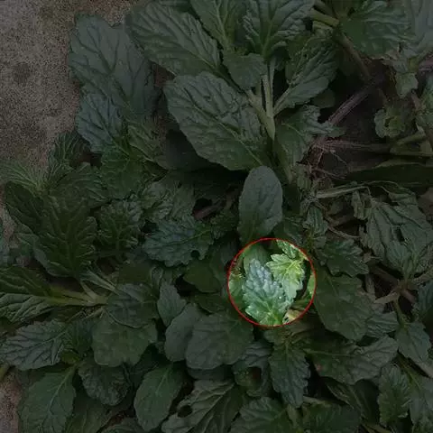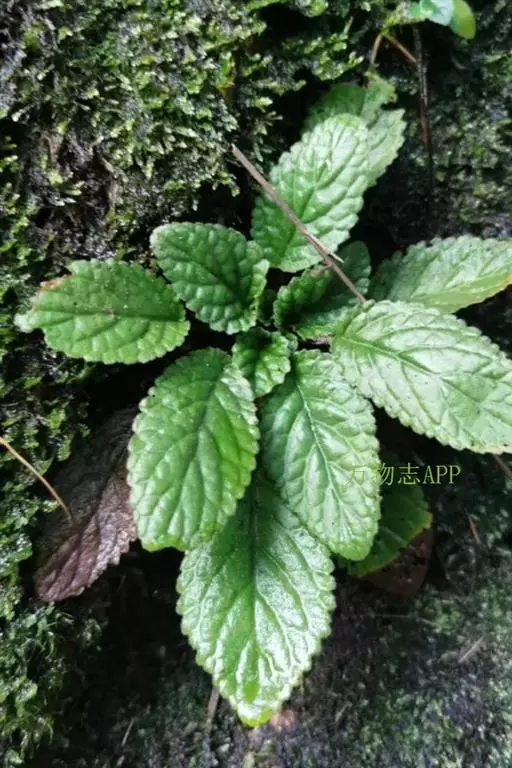 多年生草本,具地下茎。地上茎近直立或直立,分枝,四稜形,浅四槽,高0.6-1米,被短柔毛。叶具柄,柄纤细,长0.2-2.5厘米,腹凹背凸,密被短柔毛,叶片卵圆形,长1.2-6厘米,宽0.9-3厘米,先端急尖或短渐尖,基部圆形、钝、近心形或急尖,边缘具锯齿状圆齿,草质,上面绿色,疏被短柔毛,下面淡绿色,靠中脉两侧带紫色,或有时全为紫色,近无毛或仅沿脉被短柔毛,侧脉4-5对,与中脉在上面微下陷,下面明显隆起,网脉在上面不明显,下面显著。轮伞花序少花或多花,在茎、枝叶腋内腋生,疏离;苞片小,近线形,具缘毛;花梗长约2毫米,被短柔毛。花萼钟形,长6-8毫米,常为水平伸出,外面沿肋上被具节长柔毛,内面无毛,13脉,二唇形,上唇3齿,齿短,急尖,下唇与上唇近等长,2齿,齿披针形。花冠白色或淡红色,长约1厘米,外被短柔毛,内面无毛,冠筒稍伸出,至喉部扩大,冠檐二唇形,上唇直立,先端微缺,下唇开展,3裂,中裂片较大。雄蕊4,前对较长,不伸出,花药2室,室略叉开。花柱略超出雄蕊,先端相等2浅裂,裂片外卷。花盘浅盘状,4裂。小坚果卵圆形,腹面具稜。花、果期6-11月。