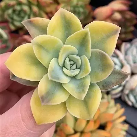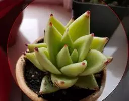 景天科风车草属的多肉植物,原产于墨西哥。株形和风车草属胧月极为相似。花瓣被蜡,叶排成延长的莲座状被…