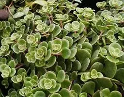 圆叶景天,景天科常绿多年生肉质草本植物,匍匐型生长,叶片对生,尖端钝圆,全光照条件下,叶片秋季变红,…