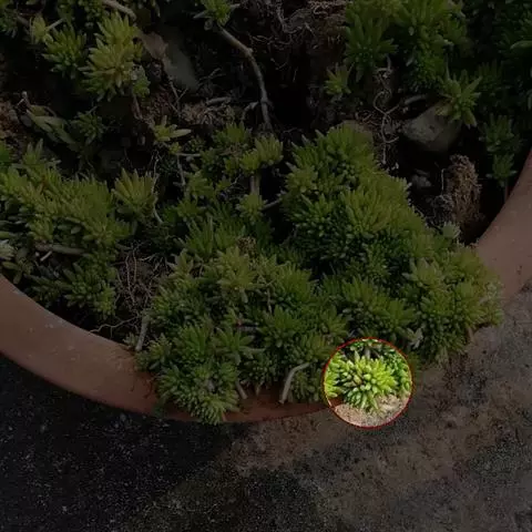 薄雪万年草别名矶小松,景天科景天属多年生草本植物,其细小的蓝绿色棒状叶片环绕生长于茎端,…