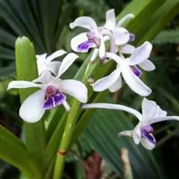 翅梗石斛:茎丛生,肉质状粗厚,呈纺锤形或有时棒状,不分枝,具3-5节,干后金黄色。叶厚革质,…