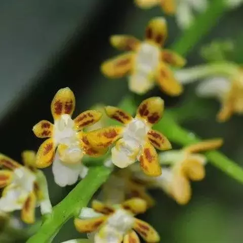 大叶隔距兰 Garay):茎直立,粗壮,长5-20厘米,连同叶鞘粗2-2.5厘米,具分枝、长而粗壮…